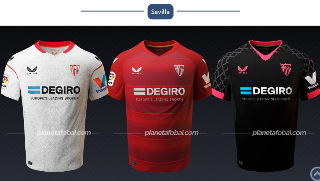 En su primera temporada junto a Castore las equipaciones del Sevilla rinden tributo a su ciudad. En el titular blanco se incorporan patrones basados en la fachada del palaciego Real Alcázar, en el suplente la iluminación nocturna del estadio Ramón Sánchez-Pizjuán es el concepto principal y en la tercera negra con rosa se incorporan motivos que se toman de los que decoran la Giralda.